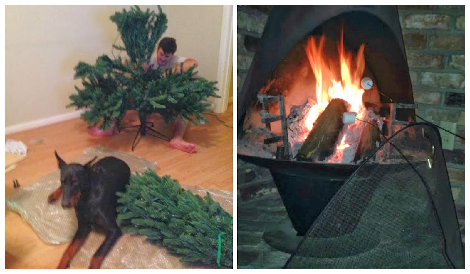I usually have a rule that I will not listen to Christmas music or decorate until after Thanksgiving. But with the crackling fire, s'mores, and my first ever fake tree that we bought for 80% last year, I cracked. We put on Christmas music and put up the tree. Oh, and rearranged all of our living room furniture in the process.