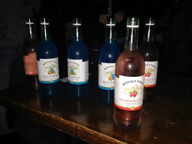 Michael decided that since this fine establishment served Boone's Farm, we all needed some. It just wasn't a question. He asked everyone what flavor they wanted. Disappeared for about 10 minutes and returned with about 8 bottles.