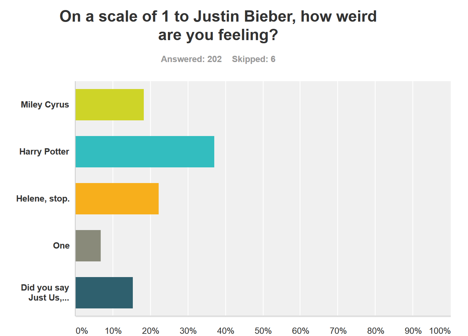 When I posted a survey last week I thought I would get maybe a dozen responses. I was pretty shocked that 208 people answered. So first, thank you for reciprocating. Second, this really was anonymous. A few of you said your name on some of the answers but I only know who you are if you told me on one question, since it's all anonymous otherwise. Now let's get to the results.
