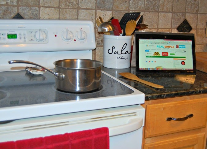 Even after my work day, I take my Lenovo YOGA 3 Pro with me. In the kitchen I use it as I scorll through my recipes. It stands up sturdy in tent mode, and it's easy to use the keyboard to look up quick ingredients for my recipe.
