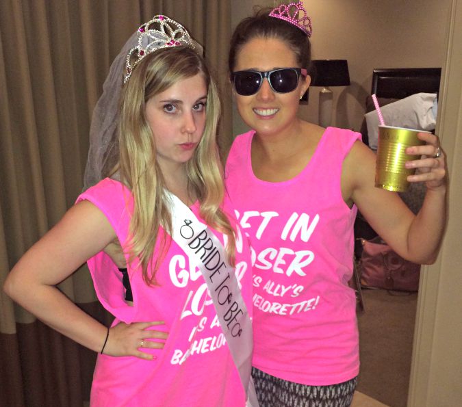 Luckily, pink and more pink is the color of the movie. Afterall, on Wednesdays they wear pink. I ordered hot pink tank tops that read “Get in Loser, it's Ally's Bachelorette!” I think the plastics would approve: