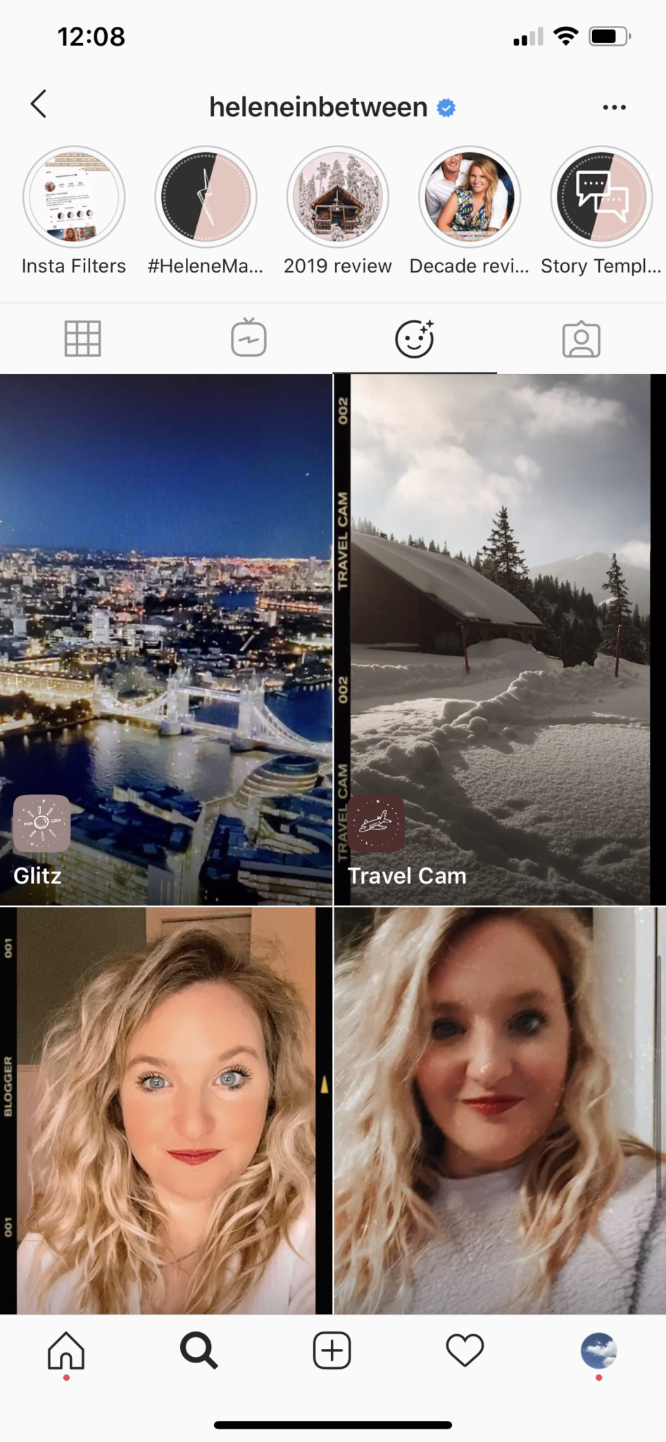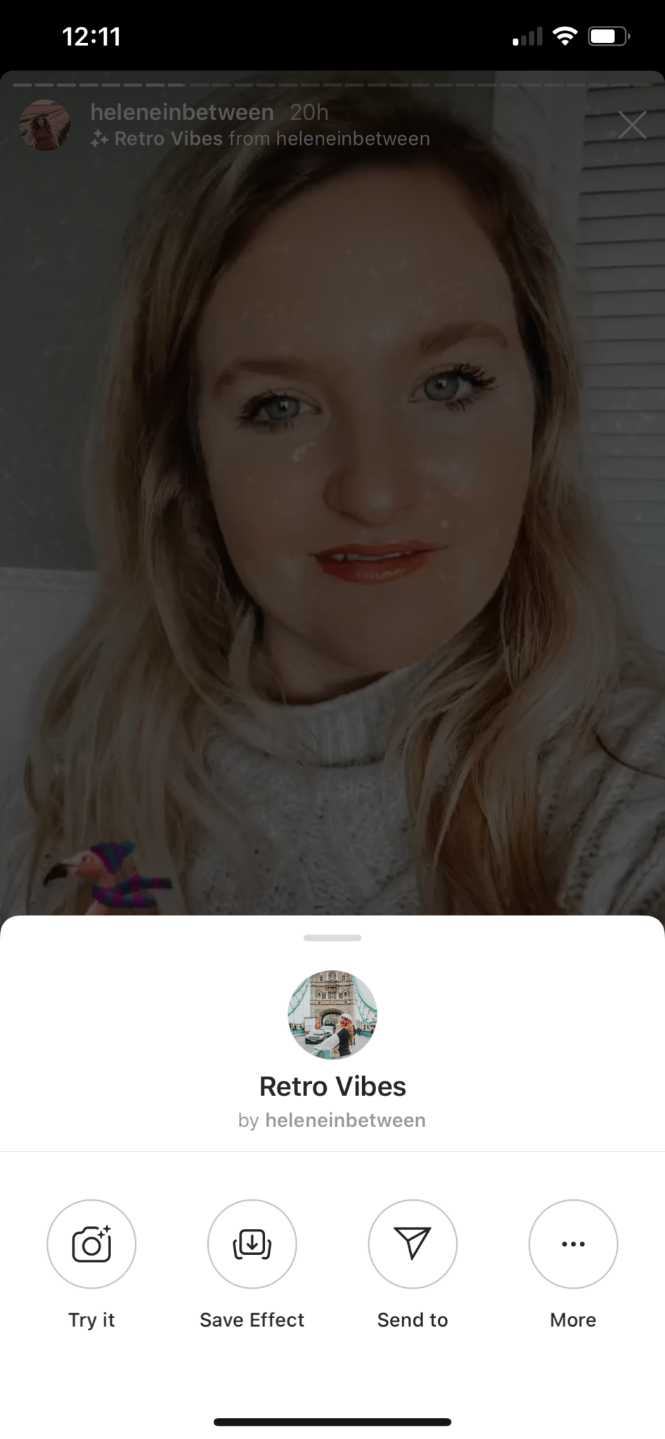 - Go to a profile of a creator you like (for example I have Instagram Story Filters on my profile @heleneinbetween)