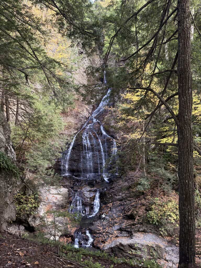 If you’re looking for a hike that delivers big rewards for minimal effort, Moss Glen Falls is your trail. Just a short walk through the woods leads to one of Vermont’s most stunning waterfalls, framed by glowing fall foliage. The trail is easy and family-friendly, making it perfect for a quick morning adventure or a peaceful afternoon stop between drives. Bring your camera—the light filtering through the leaves makes the falls shimmer gold this time of year.