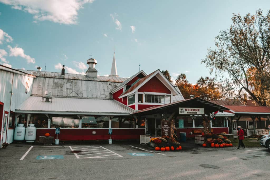 If Vermont had a scent, it would be this place. The Cold Hollow Cider Mill in nearby Waterbury Center is a fall must-visit for its legendary cider donuts, fresh-pressed apple cider, and maple creemees (soft serve made with pure Vermont maple syrup). Watch apples tumble through the presses, browse shelves stocked with local jams, cheeses, and maple candy, and grab a cup of warm cider for your scenic drive back to Stowe. Don’t forget to pick up a jug—or two—of their famous cider for the road.